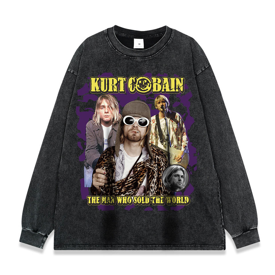 OEM Europe and America Hot Hip Hop Rap Series Printed Heavy Wash to Make Old Long Sleeve T-Shirt Men's American Fashion Brand
