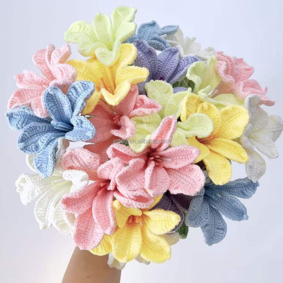 Fiori di Lana Lavorati a Mano, Bouquet di Fiori all'Uncinetto, Decorazioni Natalizie Lavabili, Colore Personalizzabile, Produzione OEM