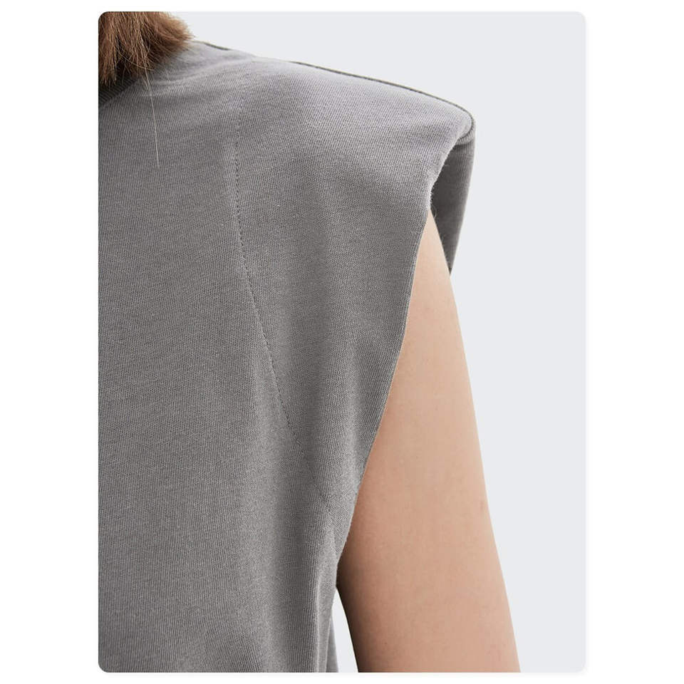 T-shirt da Donna OEM di Fabbrica Senza Maniche con Spalline Imbottite Taglia Standard Tessuto Morbido al Tatto