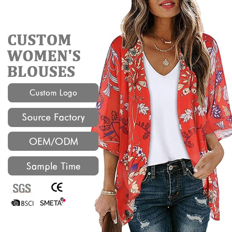 Cardigan Kimono con stampa floreale OEM Factory da donna con stampa floreale stile Casual Top Cardigan