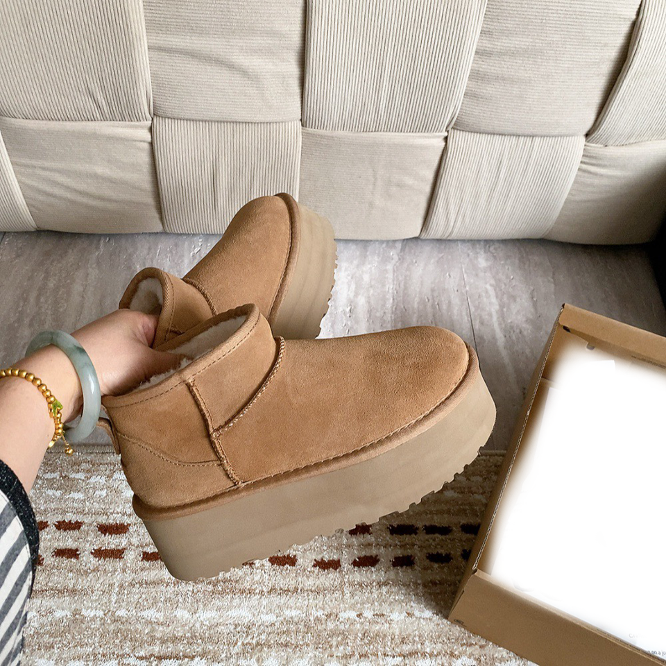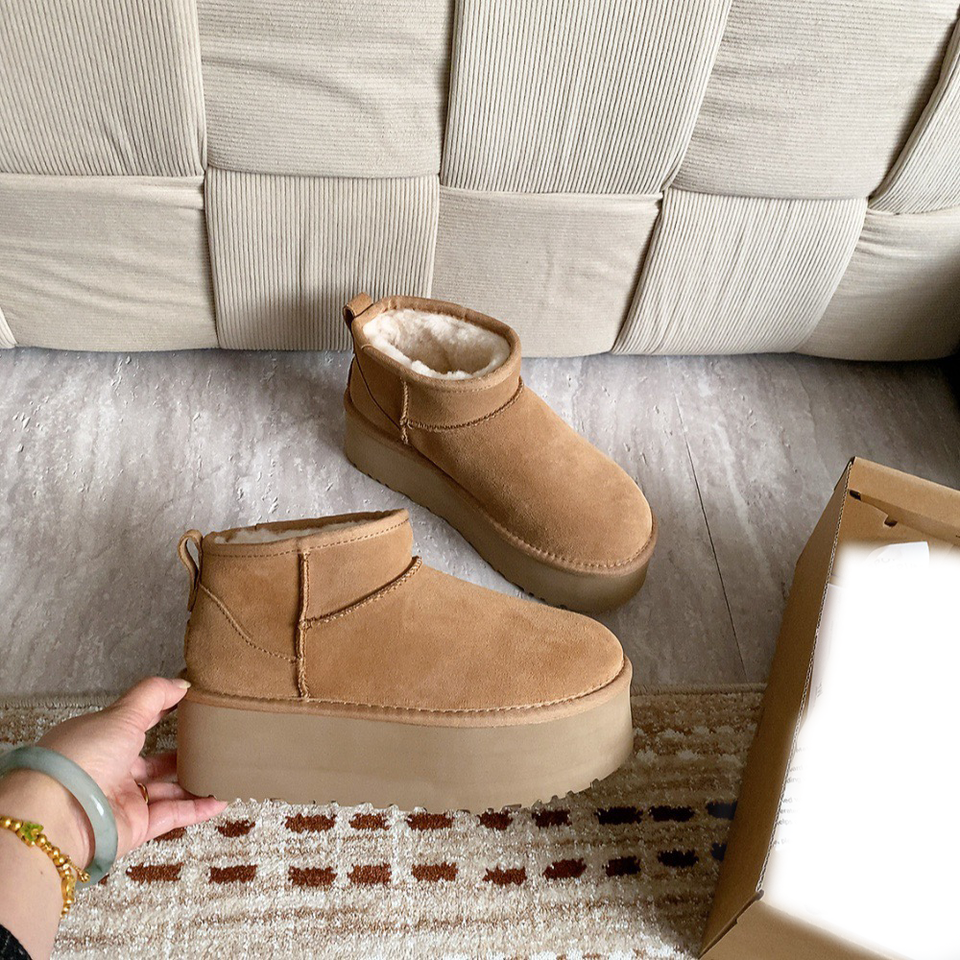 OEM GG High Quality Wool Leather Thick Soled Fur Lined High Platform Unisex Snow Boots Comfortable Casual Shoes for Winter