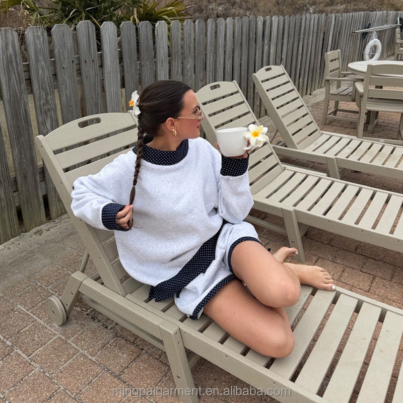 Felpa Oversize con Collo Alto in Spugna Francese 100% Cotone di Alta Qualità OEM, Logo Personalizzato, Motivo a Pois, Felpa da Donna con Collo Alto