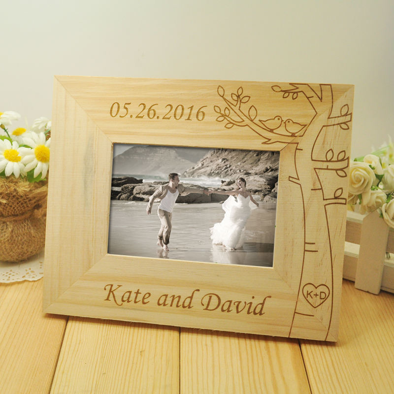 Cornice per foto in legno personale di alta qualità 4x6 pollici con Logo personalizzato incisione Laser all'ingrosso