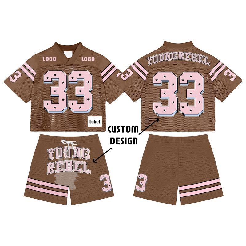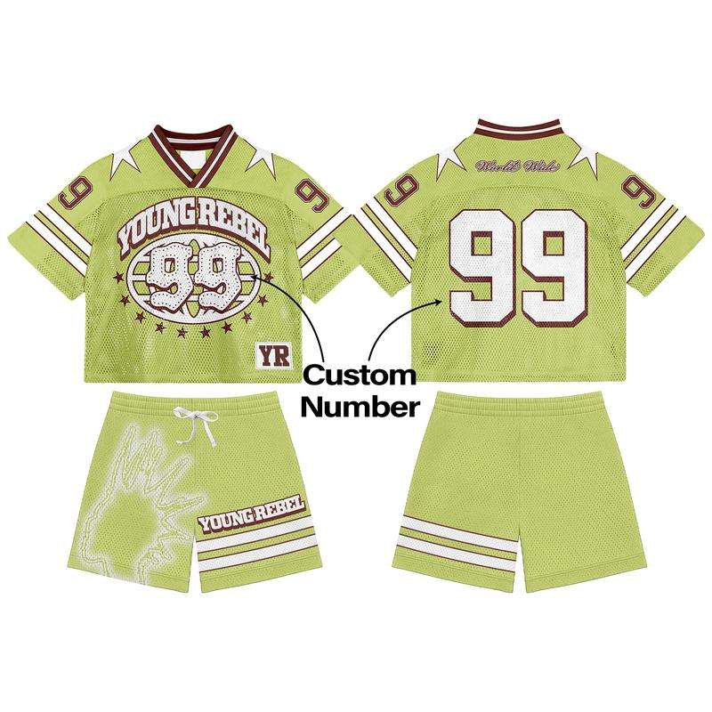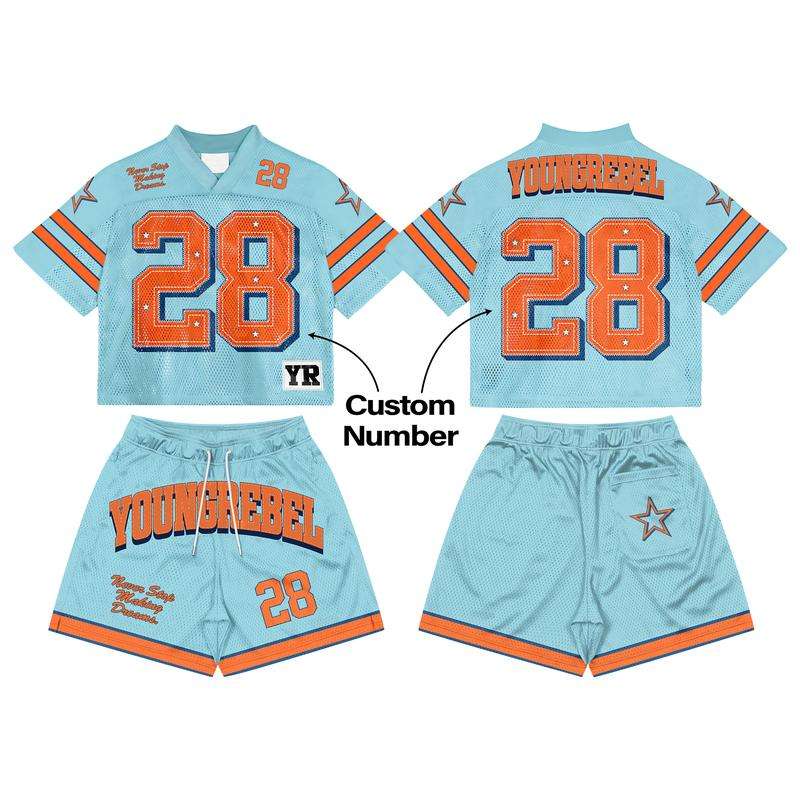Set di Maglia da Football Americana e Pantaloncini Personalizzati OEM di Alta Qualità, Traspiranti in Rete, 2 Pezzi, Stile Crop Top