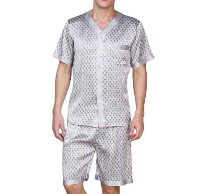 OEM di alta qualità nuova estate da uomo manica corta di lusso in seta pigiama Set con Shorts pigiami in seta pigiami personalizzati