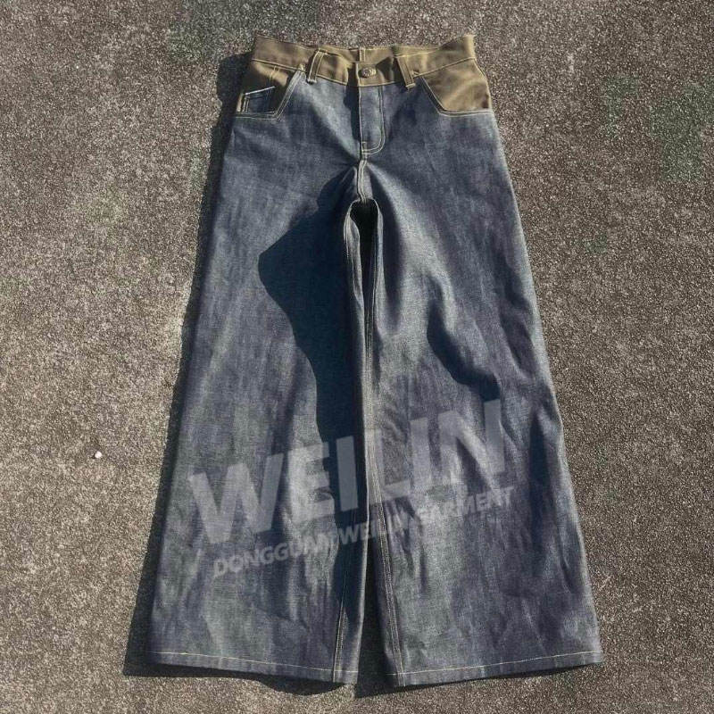 OEM Jeans Manufacturer Custom High Waist Selvedge Raw Denim Loose Oversized Wide Legged Denim Pant Super Baggy Jean for Men