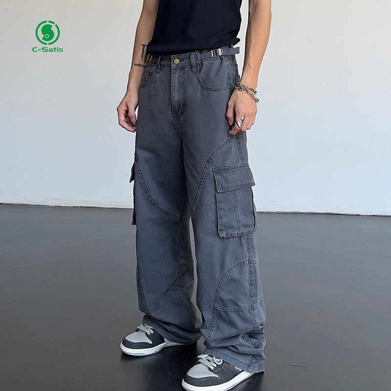 OEM Loose Fit Men's Cargo Jogger Pants Mid-Waist Casual Streetwear Baggy Twill Cargo Pants With Flat Front Style