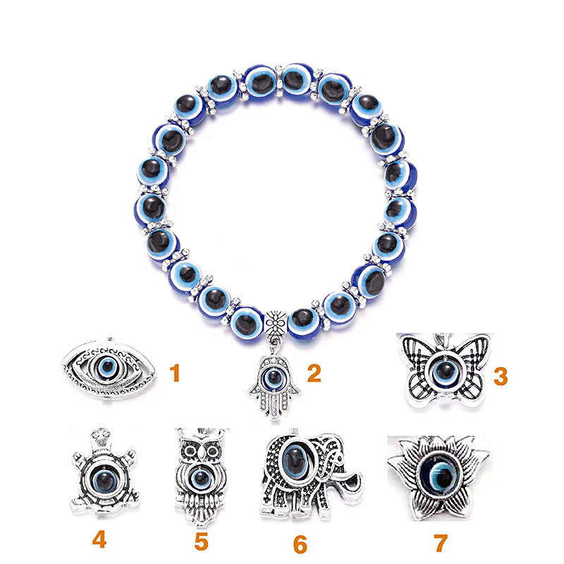 Bracciale OEM con Occhio Turco Portafortuna, Stile Retrò, Diverse Opzioni di Charm, Gioiello con Occhi in Pietra Naturale per Uomini e Donne