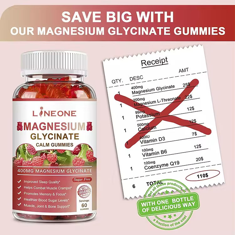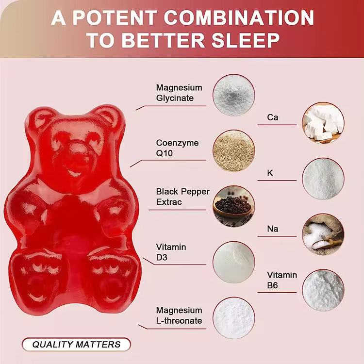 Caramelle Gommose al Glicinato di Magnesio OEM Calm Gummies per Dormire Bene Integratore Vitaminico