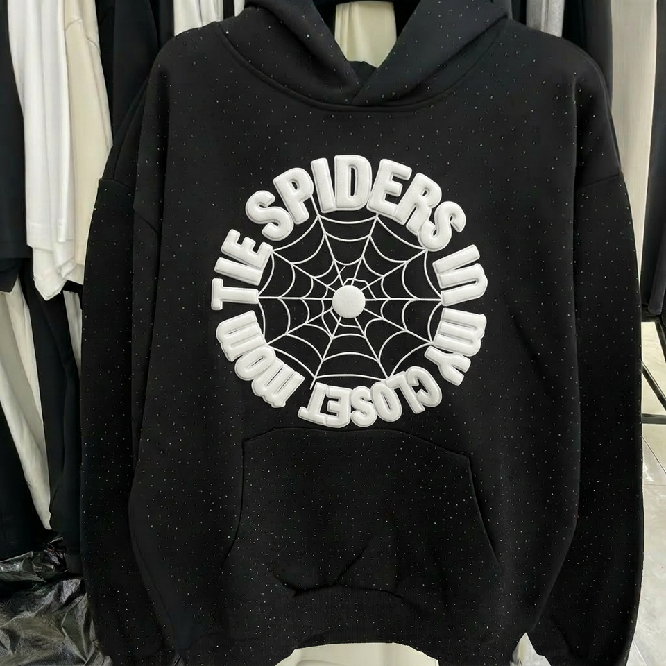 Felpa con Cappuccio e Zip Personalizzata OEM con Strass VVS 450 Gsm, Oversize Nera Streetwear con Stampa in Rilievo