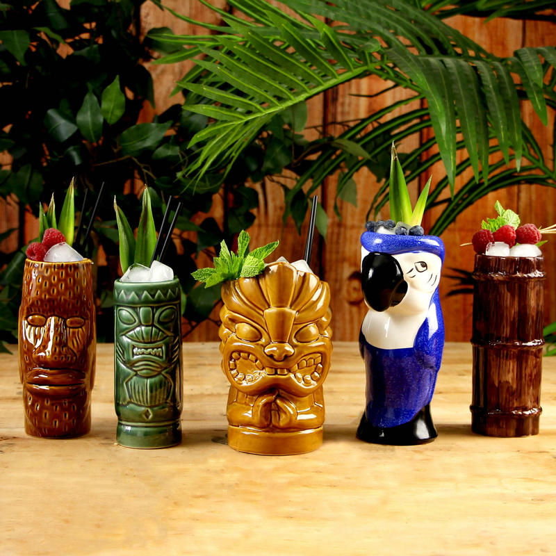 Produttore OEM dipinto a mano animale Tiki tazza di ceramica pappagallo Neko pesce pesce squalo Tiki tazze e tazze di ceramica per Bar