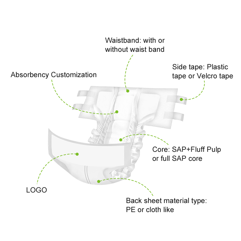 OEM produttore incontinenza usa e getta all'ingrosso pannolini per adulti brevi per anziani