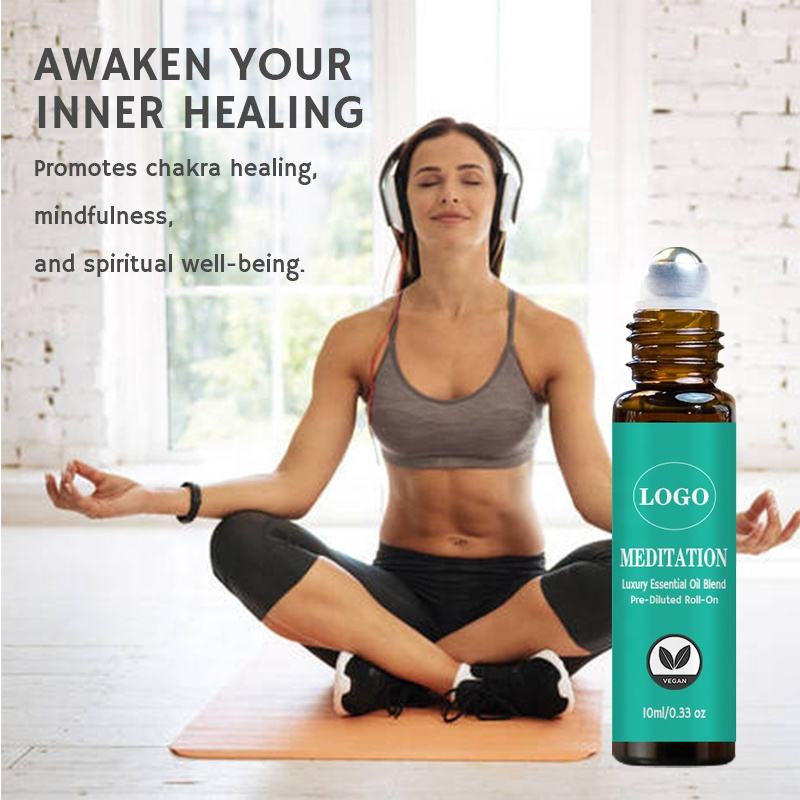 OEM meditazione olio essenziale potenziante miscela rotolo su aromaterapia per la messa a fuoco, calmante, consapevolezza e benessere spirituale