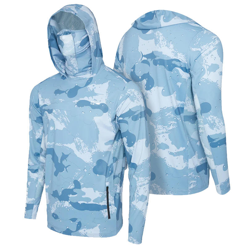 Magliette da uomo OEM con maschera Upf 50 camicie da pesca con cappuccio da pesca felpa con cappuccio a manica lunga a asciugatura rapida camicie mimetiche