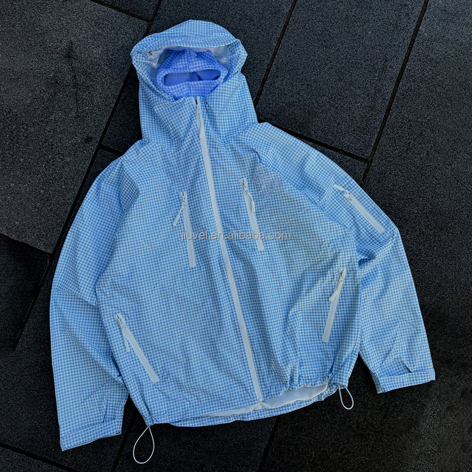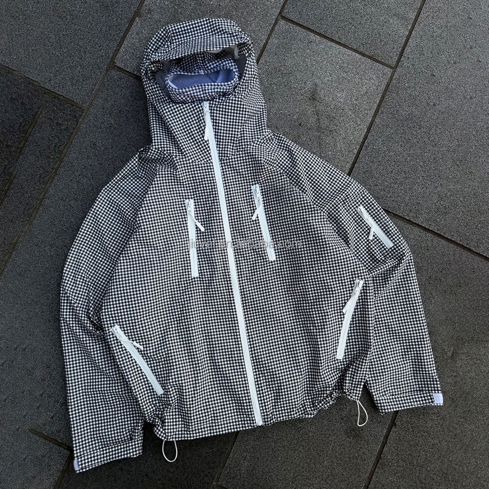 Passamontagna OEM da Uomo con Zip Integrale, Stampa a Quadri, Antivento, Impermeabile, per Attività all'Aperto, Giacca Plus Size per Escursionismo