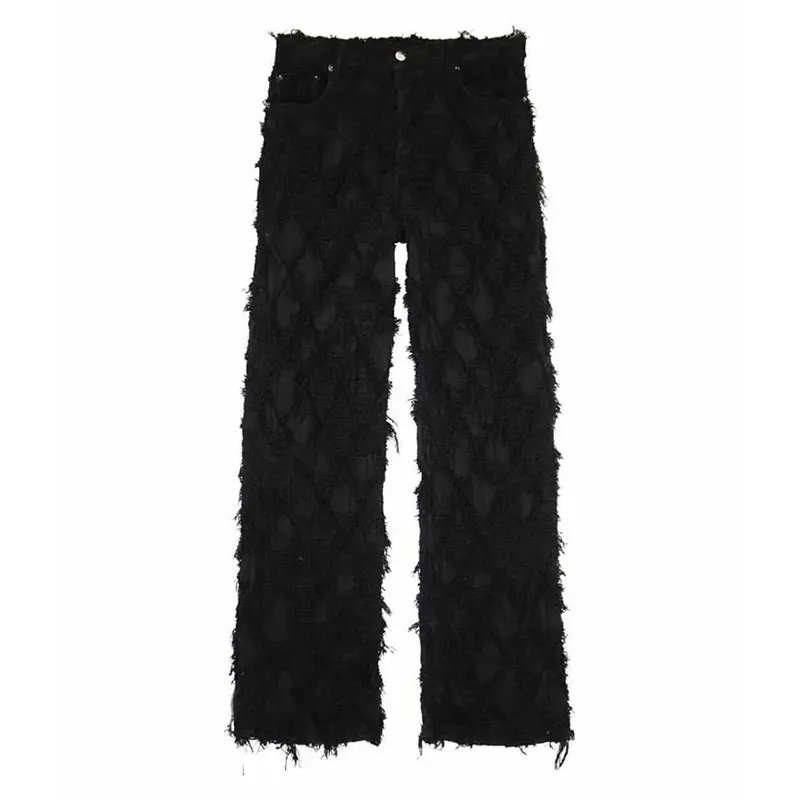 OEM Men's Casual Stacked Leather Wax Wide Leg Flare Pants Breathable Jeans with Zipper Bottom