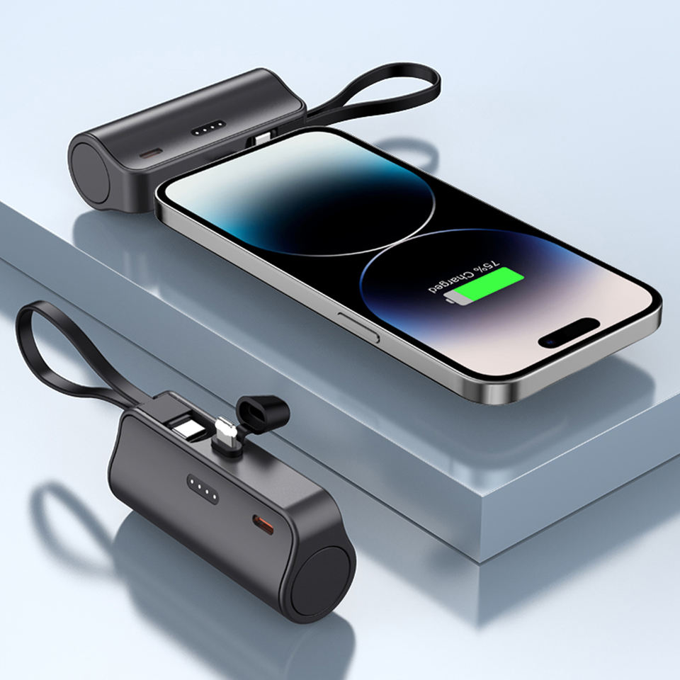Power Bank OEM Mini da 5000mAh con Cavo Integrato, Caricabatterie Portatile Rapido da 22.5W, Design a Capsula per Smartphone