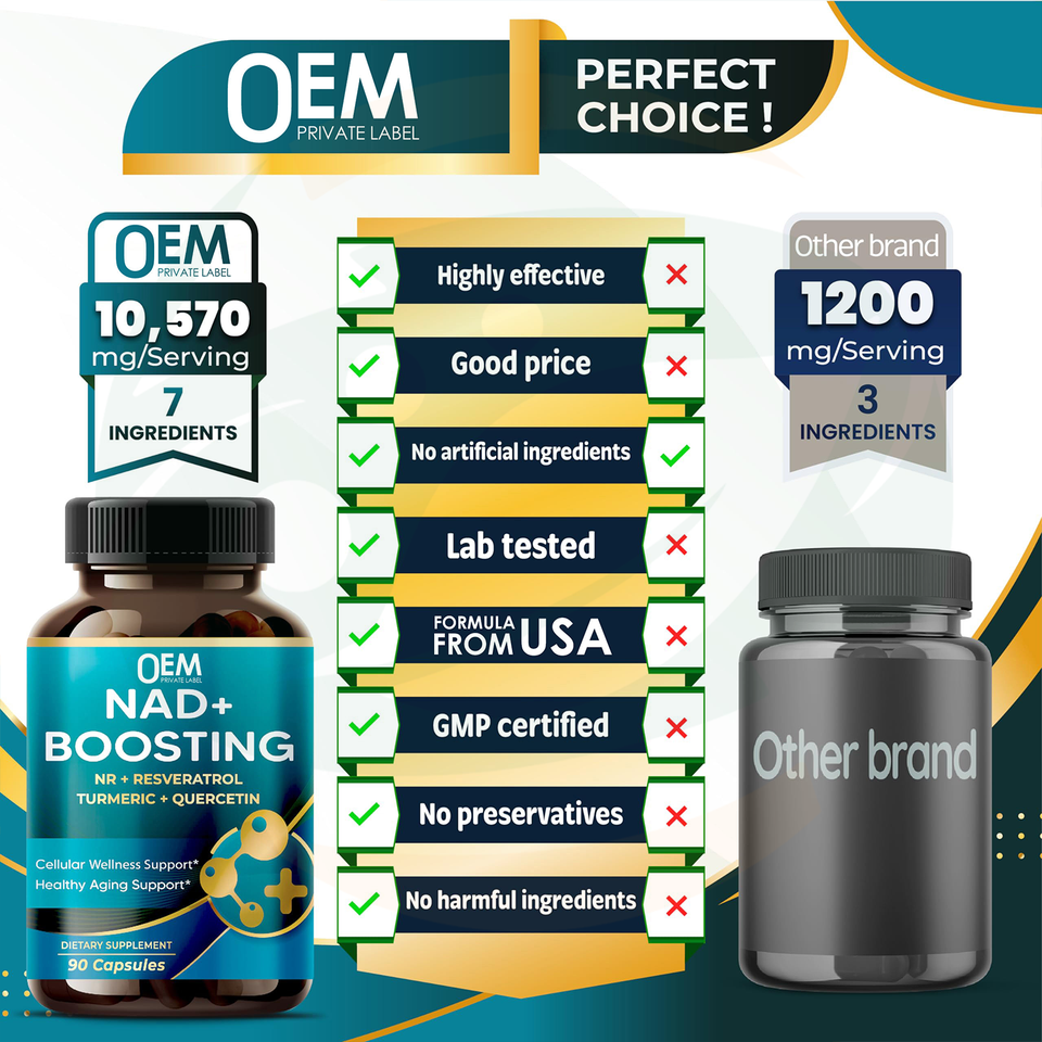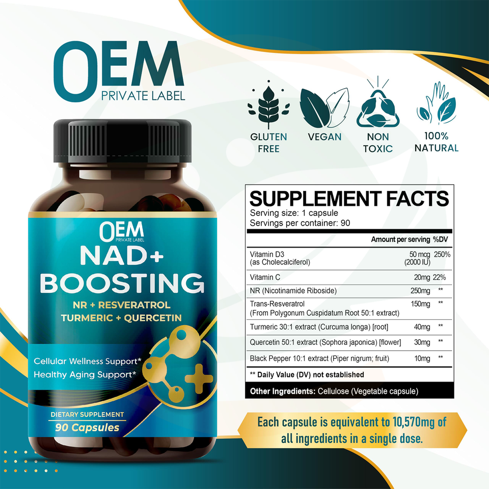 Capsule OEM per il Potenziamento di NAD+ Formula Avanzata 7-in-1 con NR, Resveratrolo e Quercetina per il Supporto della Vitalità Cellulare