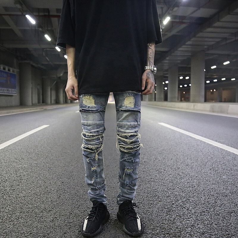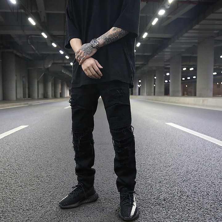 OEM nuovo stile strappato stile Pent Stock Dropshipping da uomo strappato Jeans Skinny neri