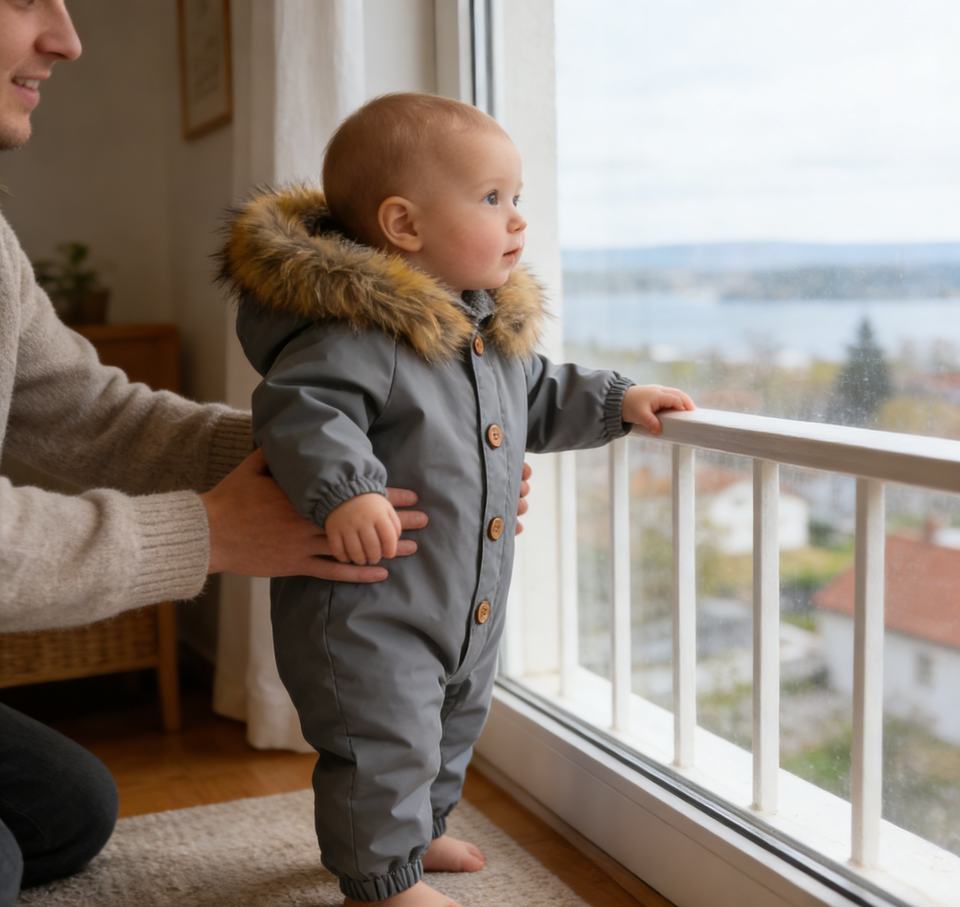 OEM Newborn Baby Winter Warm Overall Windproof Baby Romper with Fur Hood Button Closure for Solid Pattern Baby Overalls