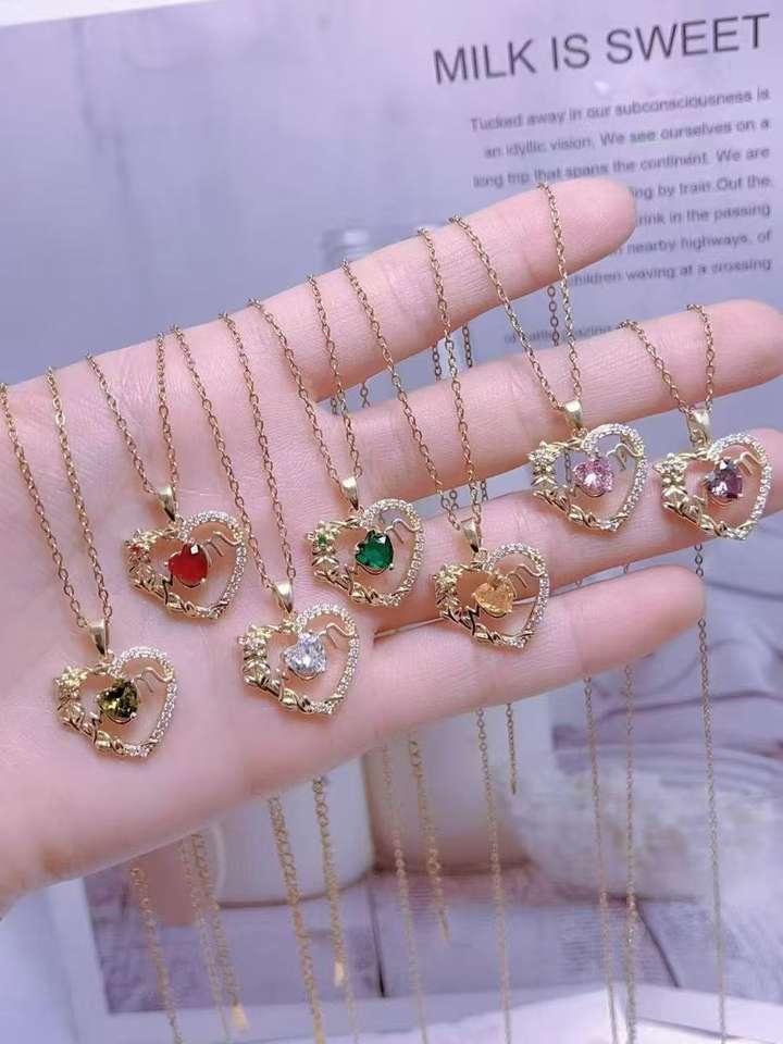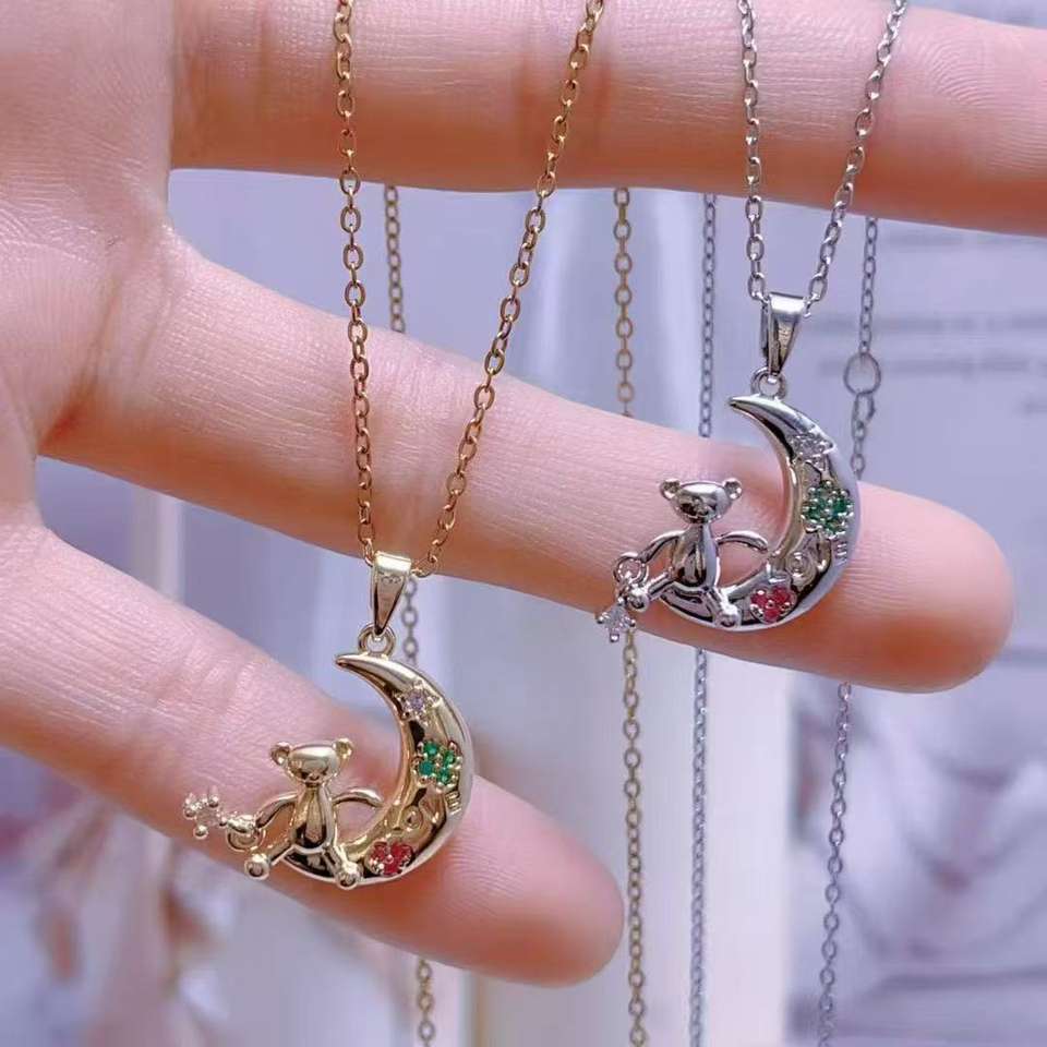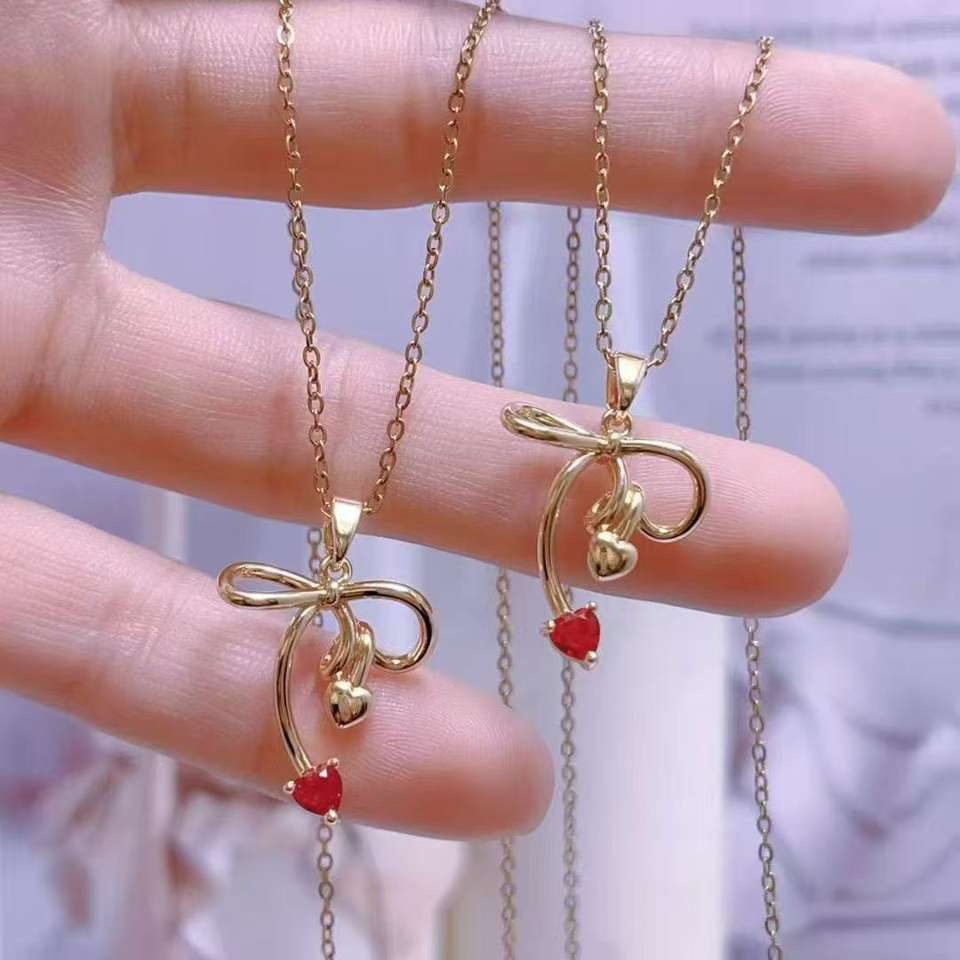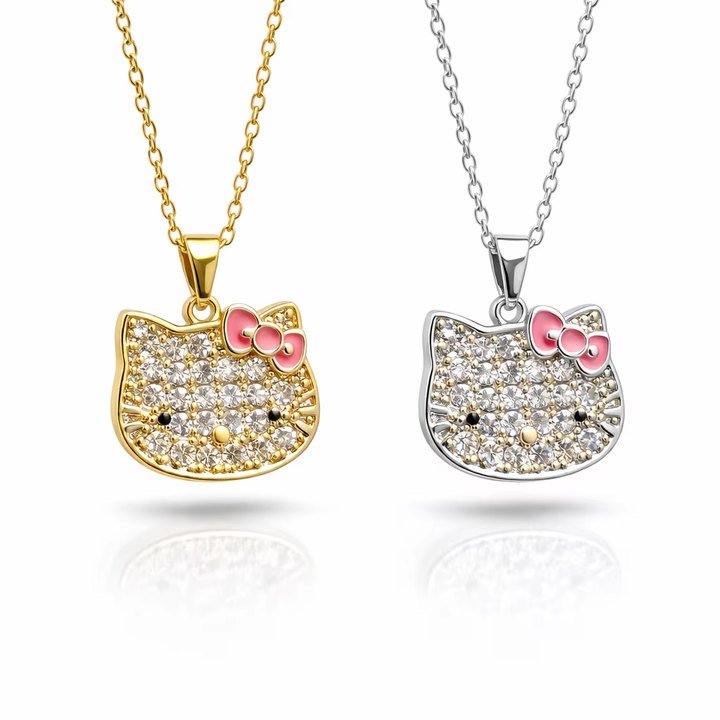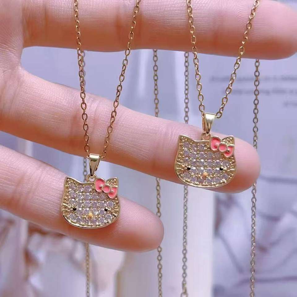 Collane con Ciondolo a Forma di Gatto con Fiocco Rosa in Zirconia Placcata Oro, Disponibili OEM ODM, Gioielli all'Ingrosso per Donne