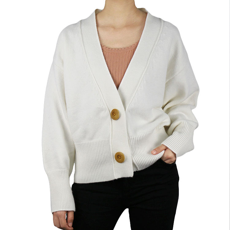 OEM/ODM Custom nuovo Design caldo vendita Cashmere cappotti donna inverno cardigan bianco maglione con bottone per ragazze