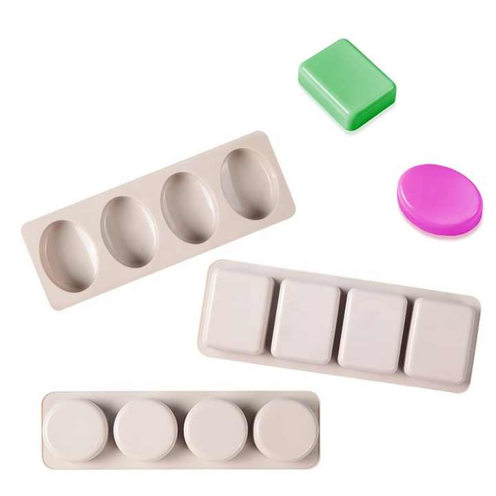 OEM ODM Custom New Hot Sell DIY Molde de silicona para jabon stampo per sapone fatto a mano 4 cavità ovale cerchio quadrato stampo per sapone in Silicone