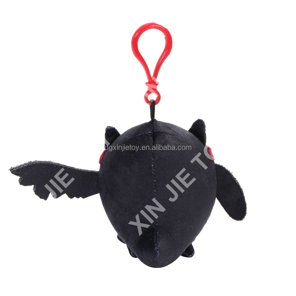Portachiavi in peluche a forma di gufo nero con motivo cartone animato, personalizzabile OEM/ODM, stampa personalizzata, morbido, da appendere