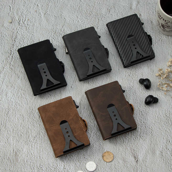 Portafoglio con fermasoldi intelligente in pelle Vintage Pu personalizzato OEM/ODM per uomo Porta carte Pop-Up con blocco RFID Porta Tarjetas De Credito