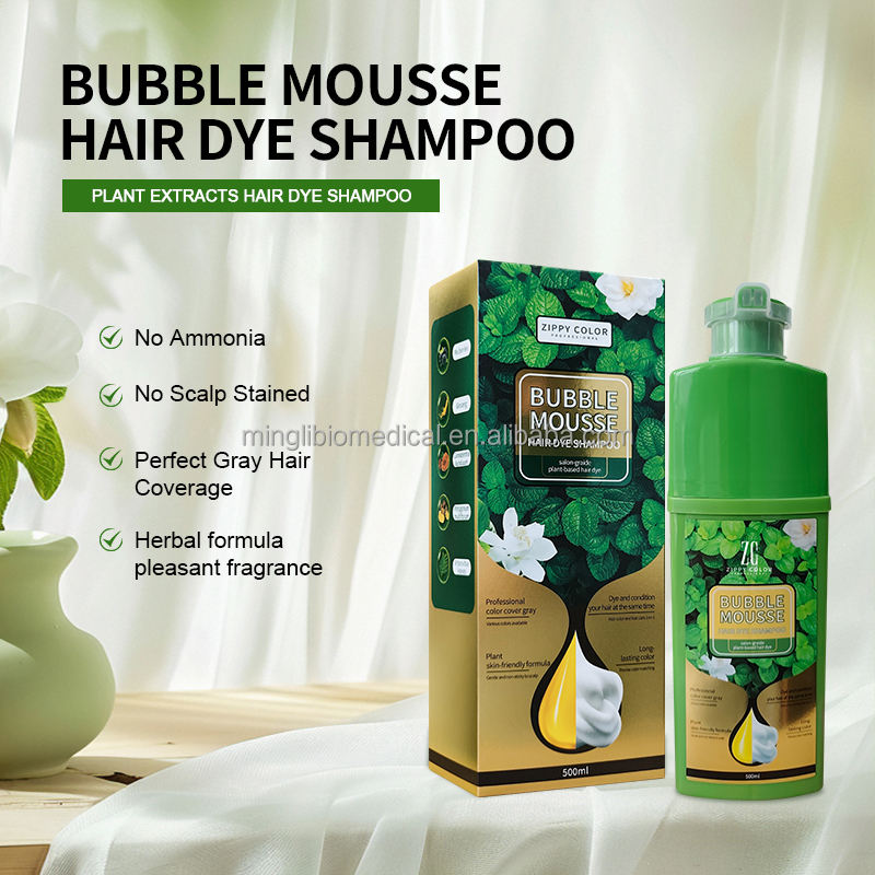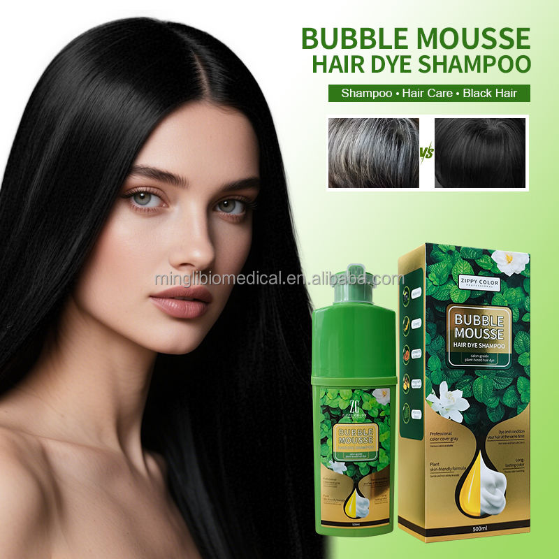 Shampoo Colorante Nero per Uso Quotidiano OEM/ODM, Tinta Semipermanente a Lunga Durata, Colore Nero Naturale con Ingredienti Ecologici