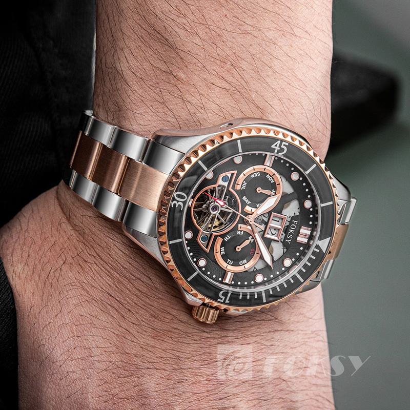 Caratteristica:Data auto, Completi il calendario, Fase della luna, Resistente all'acqua, Impermeabile, Luminoso, Mani luminose, Scava fuori, Tourbillon