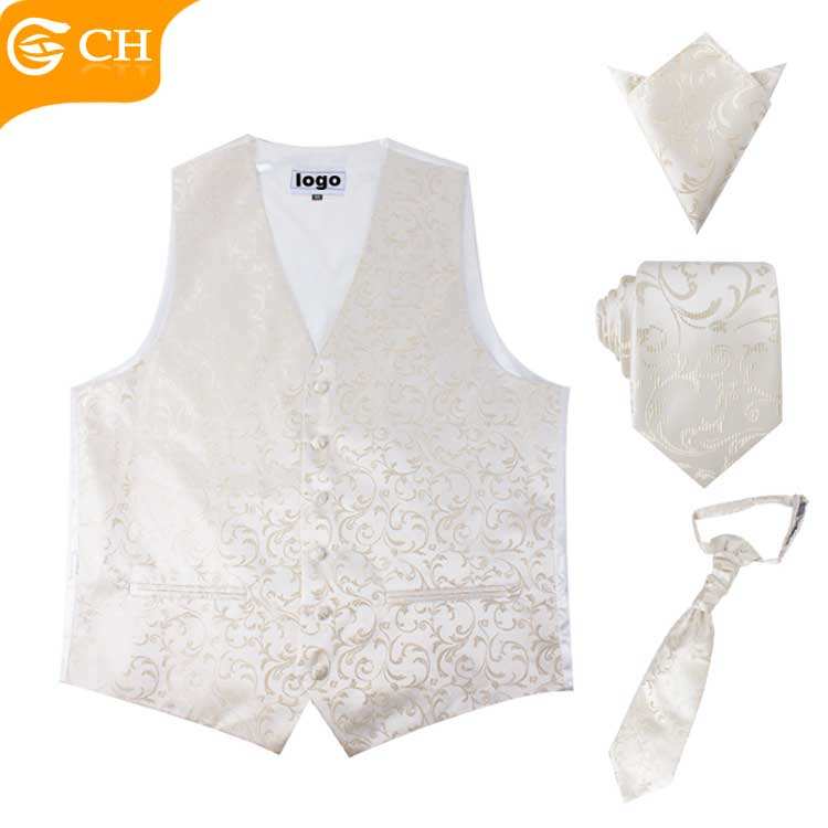 OEM ODM Latest Custom Designer White Suit Men Waistcoat Set With Tie for Men Jacquard Wedding Vest Waistcoat