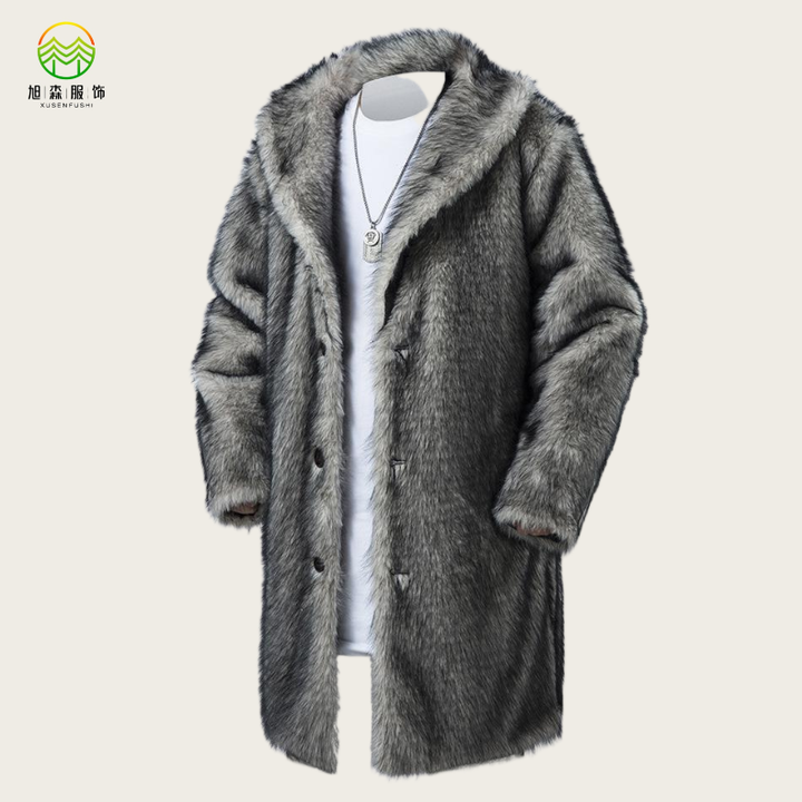 Produzione OEM/ODM di Lussuosi Cappotti in Finta Pelliccia Lunghi e Spessi con Bottoni in Corno, Giacca Oversize in Pile per Uomo