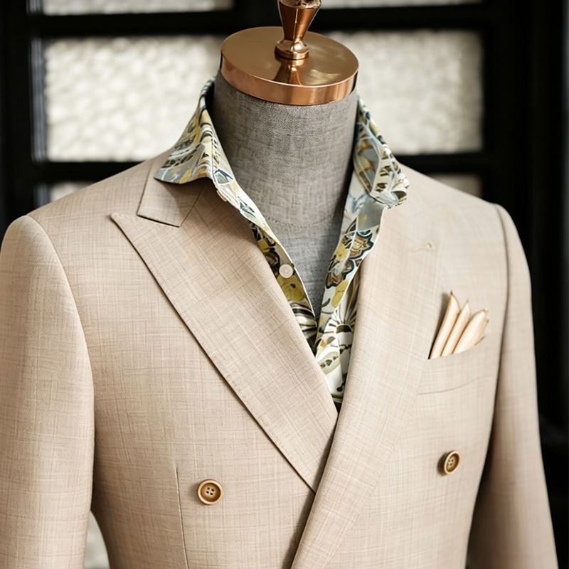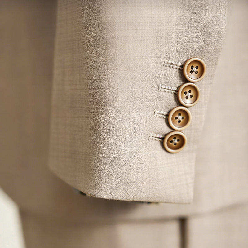 Giacca da Completo in Lana Beige Doppiopetto per Uomo, OEM ODM, Tessuto di Lana Premium, Vestibilità Slim, Blazer Elegante per Matrimoni e Ufficio