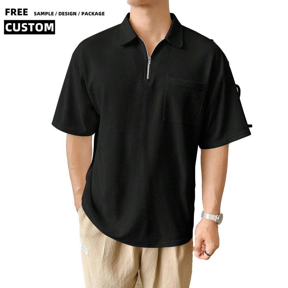 Felpa da Uomo OEM ODM in Poliestere con Colletto Polo, Zip 1/4, Pullover con Motivo Stampato, Design Ricamato e Bottoni
