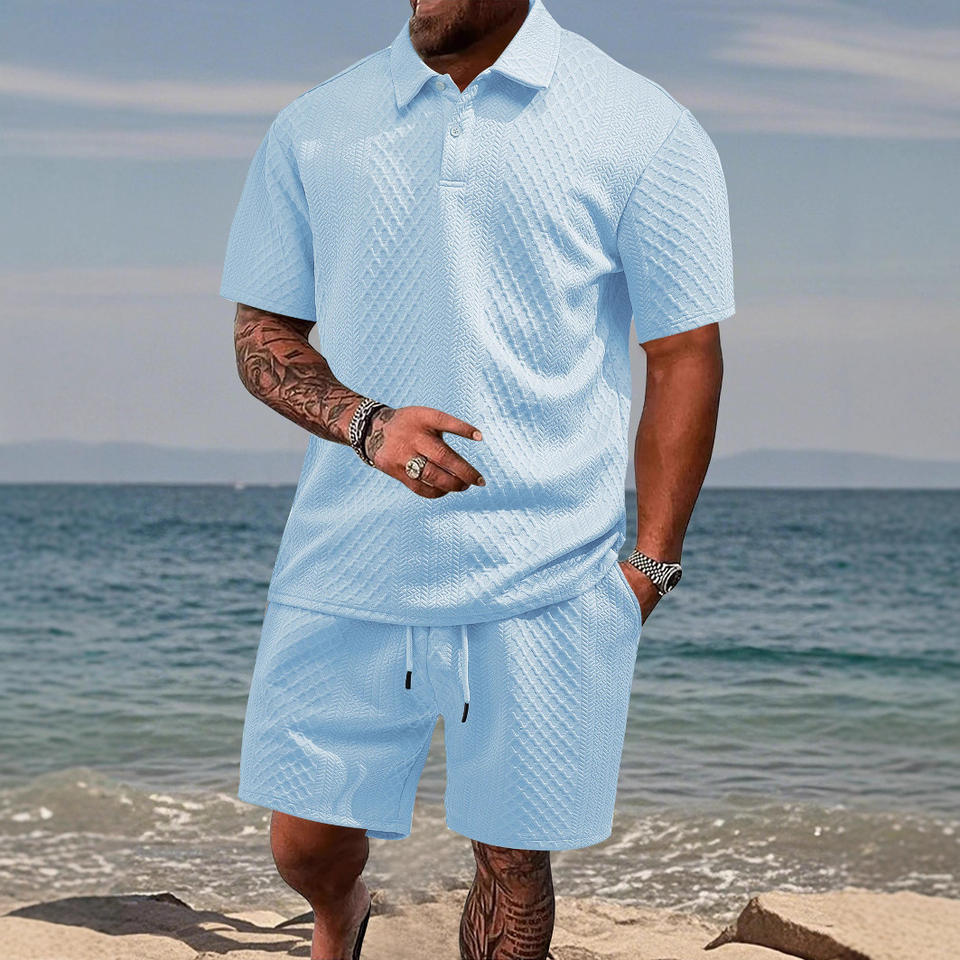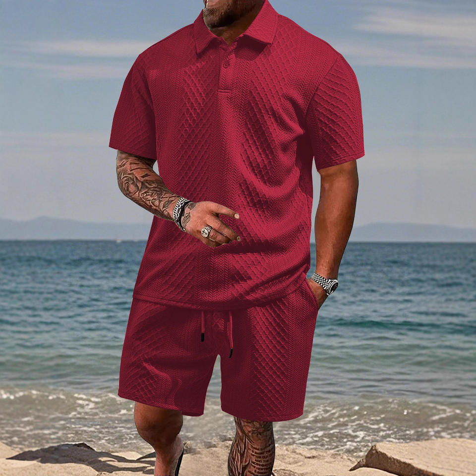 Tute da Uomo OEM ODM, Completo Casual con Polo Jacquard e Pantaloncini, Set Due Pezzi per Uomo