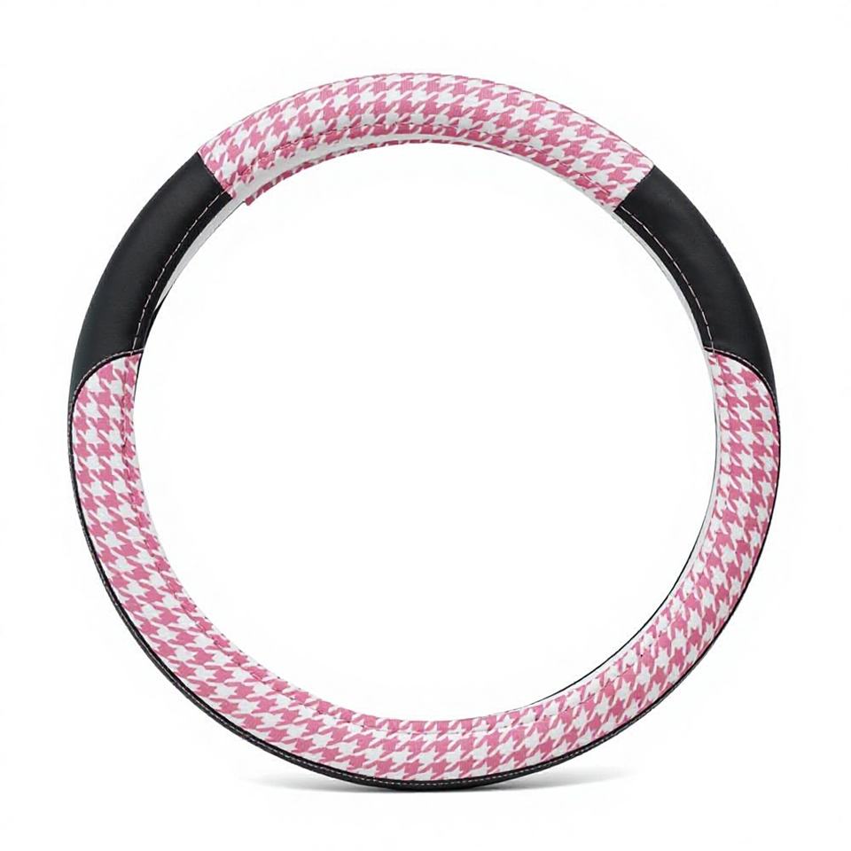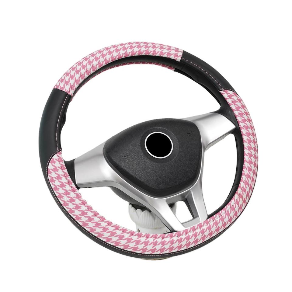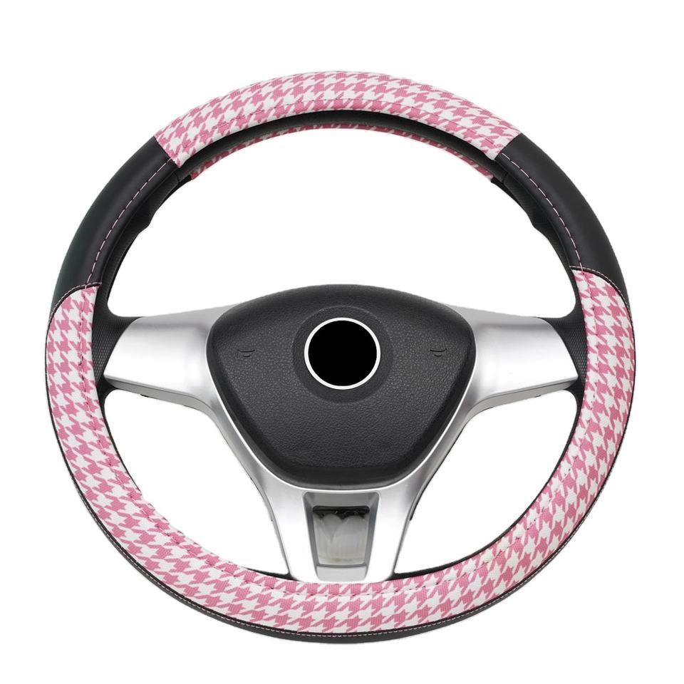 Coprivolante Universale OEM/ODM in Pelle PU Traspirante con Motivo Pied-de-Poule Rosa, Protezione per Volante, Vendita all'Ingrosso