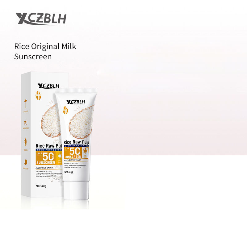Crema Solare OEM/ODM al Latte di Riso ad Alta Protezione SPF 50 con Estratto di Riso, Protezione UV a Spettro Completo, Lunga Durata, Resistente all'Acqua