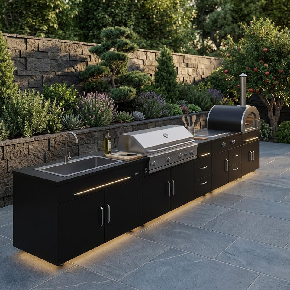 Cucina Esterna Modulare OEM/ODM in Acciaio Inox 304 con Finitura Metallica Antibatterica e Griglia per Giardino