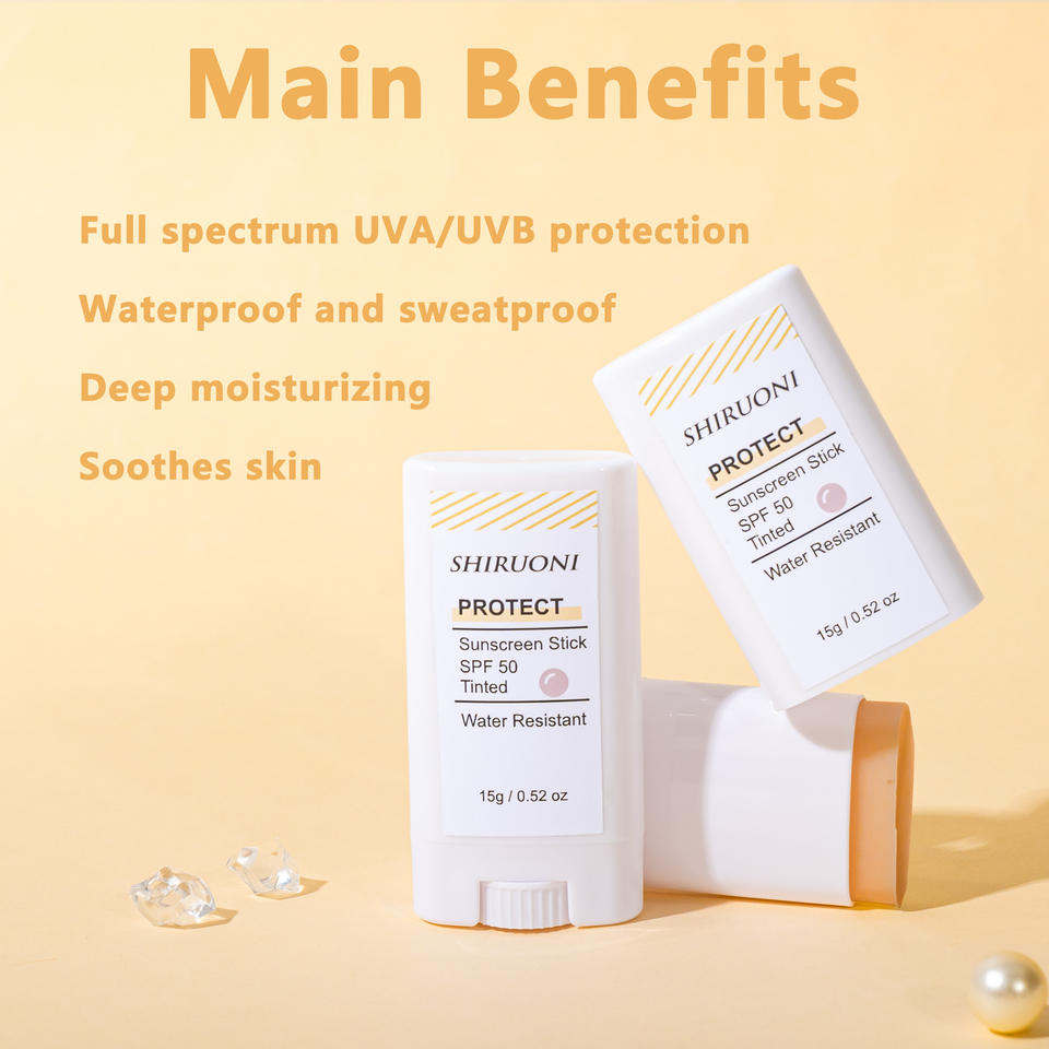 OEM ODM Vegan portatile resistente all'acqua del sudore SPF 50 spettro UVA UVB protezione solare minerale colorato protezione solare bastone viso