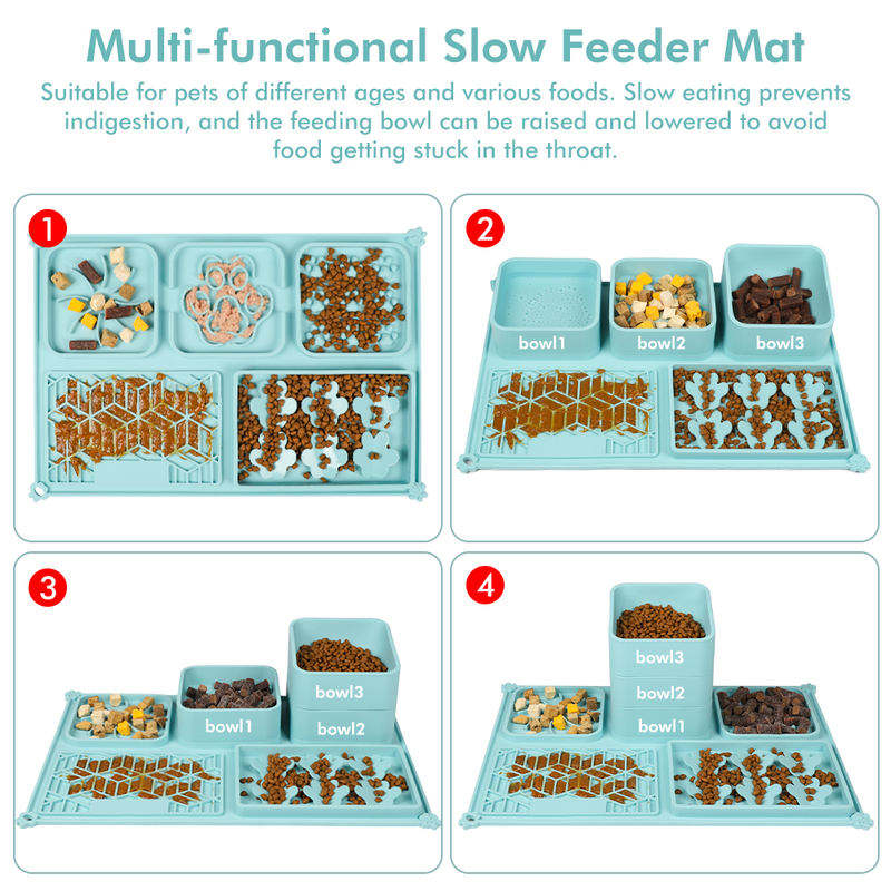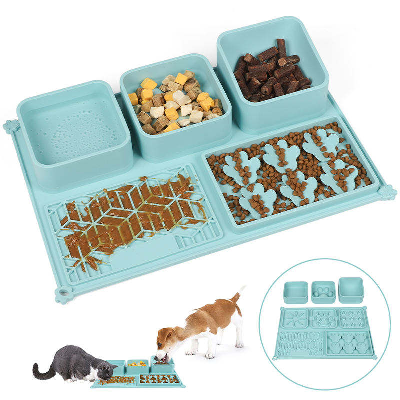 Silicone Slow Feeder Mat with Removable Bowls for Dogs Cats