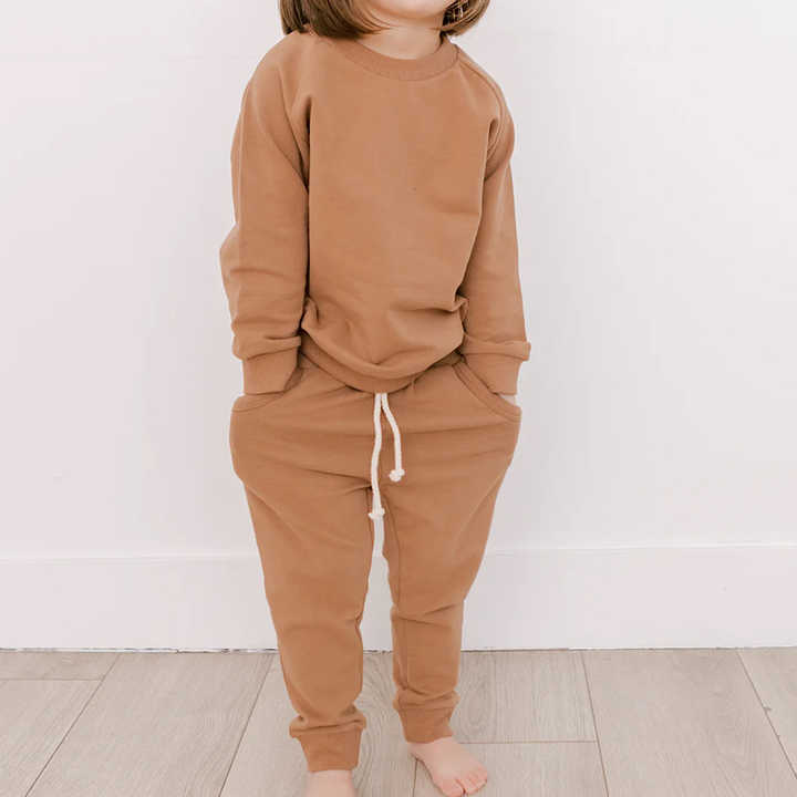 OEM Organic Cotton Baby French Terry Sweatshirt Sweatsuit Set Matching Tracksuit Pants Sustainable Kids Clothing with Gift Box