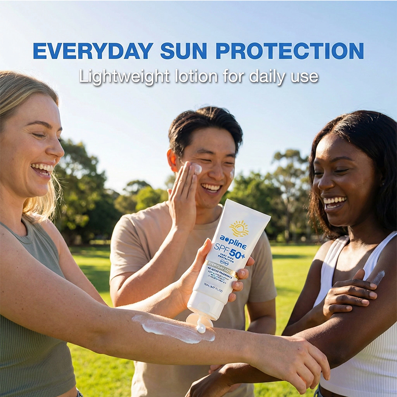 OEM Organic SPF 50+ PA+++ Face & Body Lotion UVA/UVB Protection Moisture Vitamin E All Skin Types Waterproof Fragrance-free 88ml