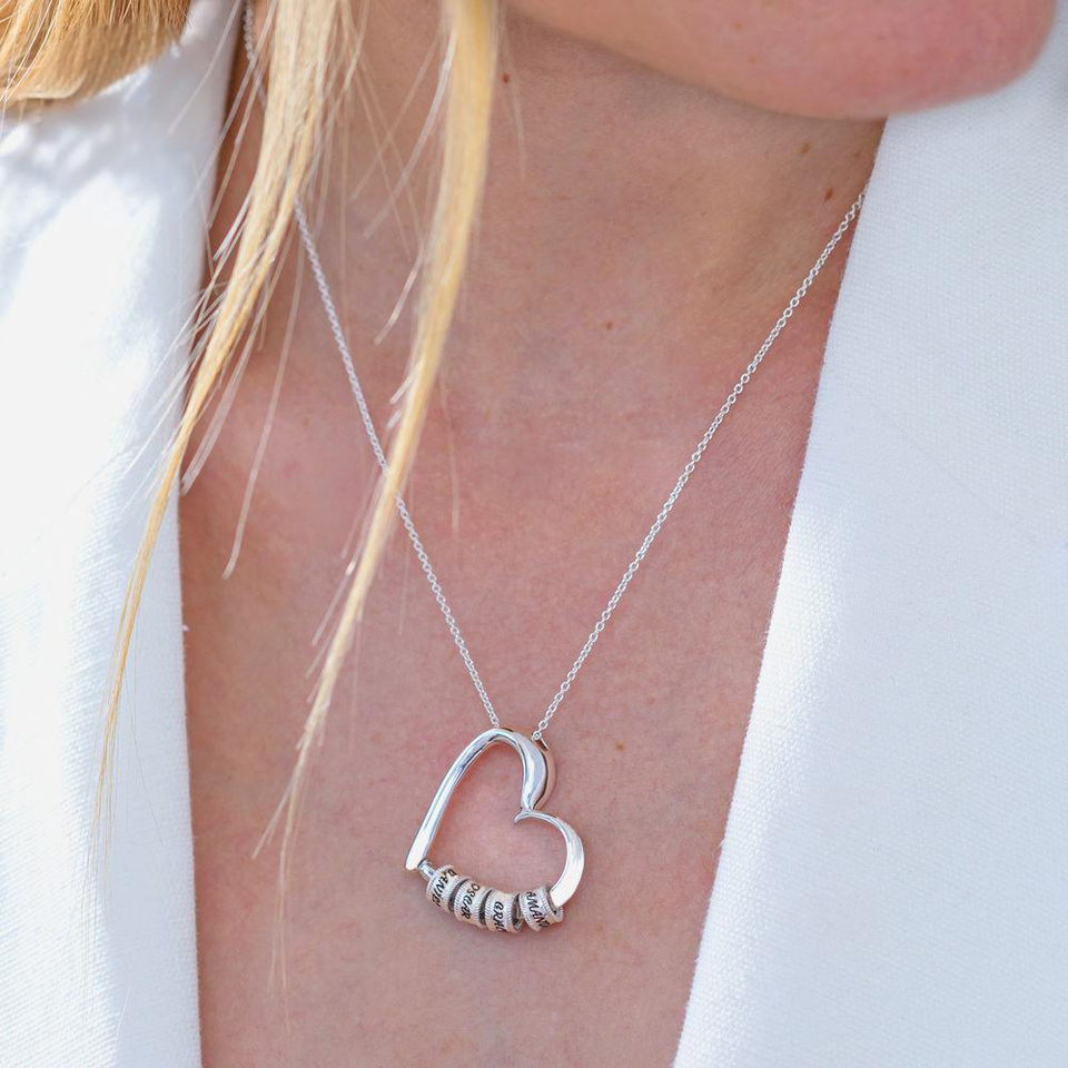 OEM personalizzato Charm Custom nomi di famiglia perline festa di compleanno regalo cuore ciondolo collana con inciso
