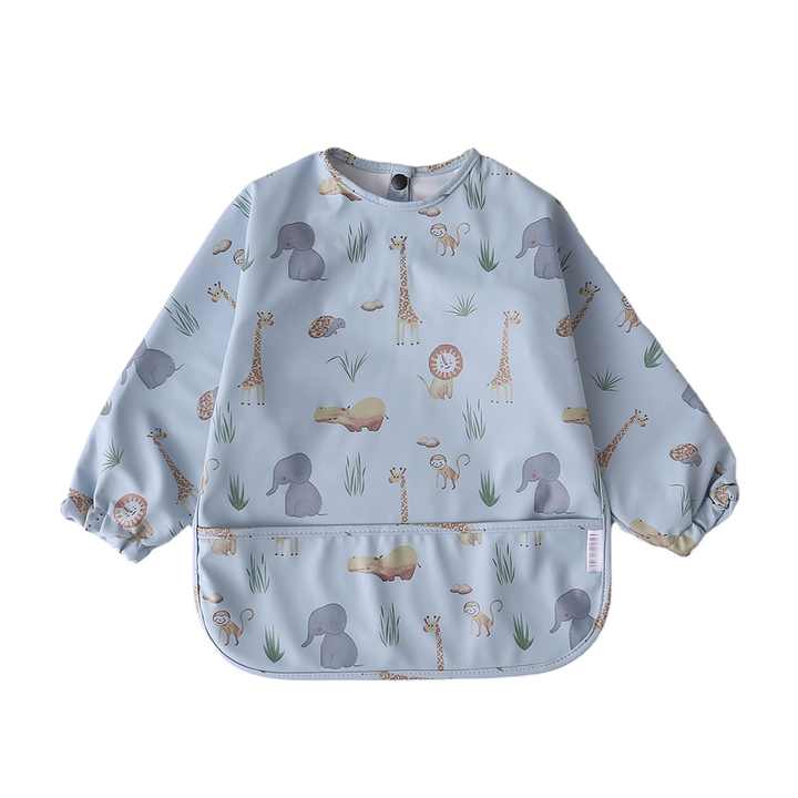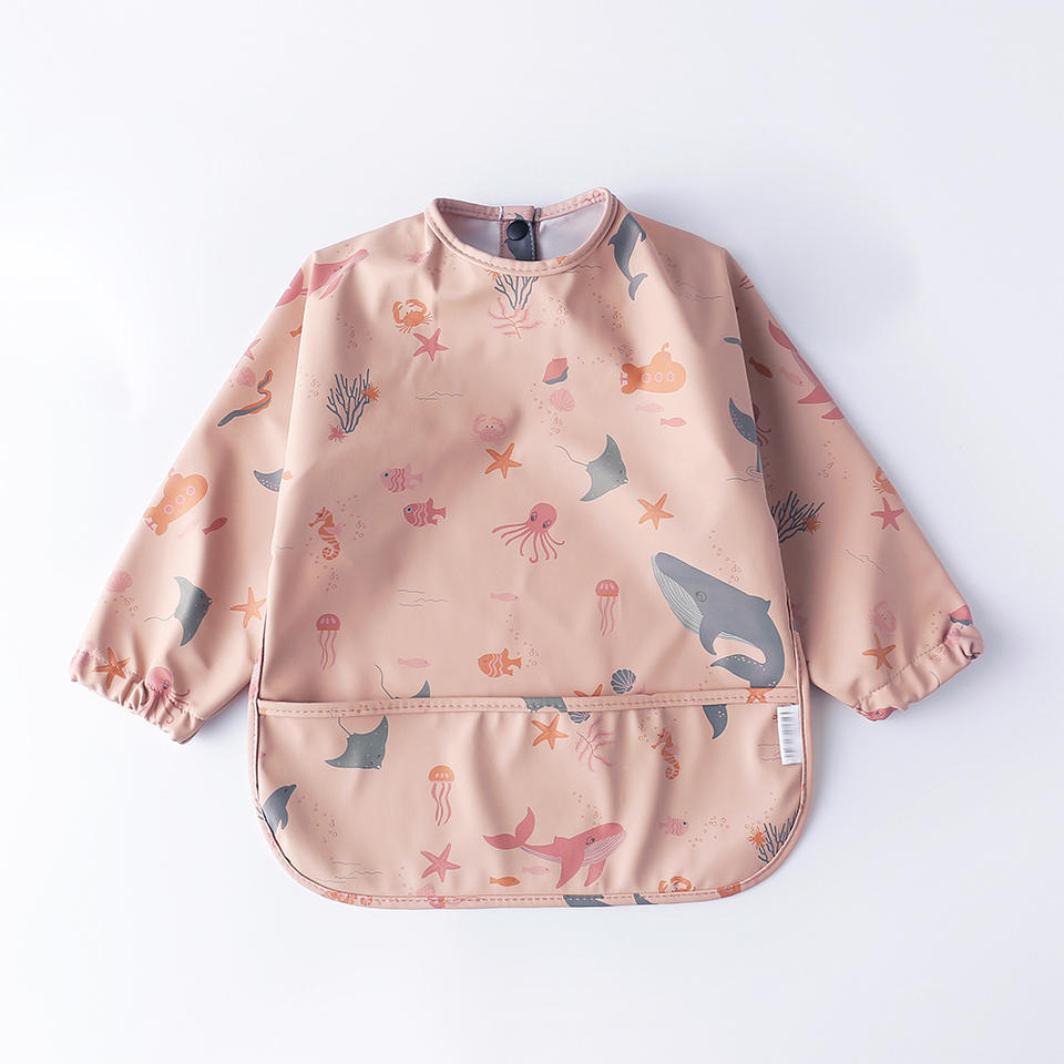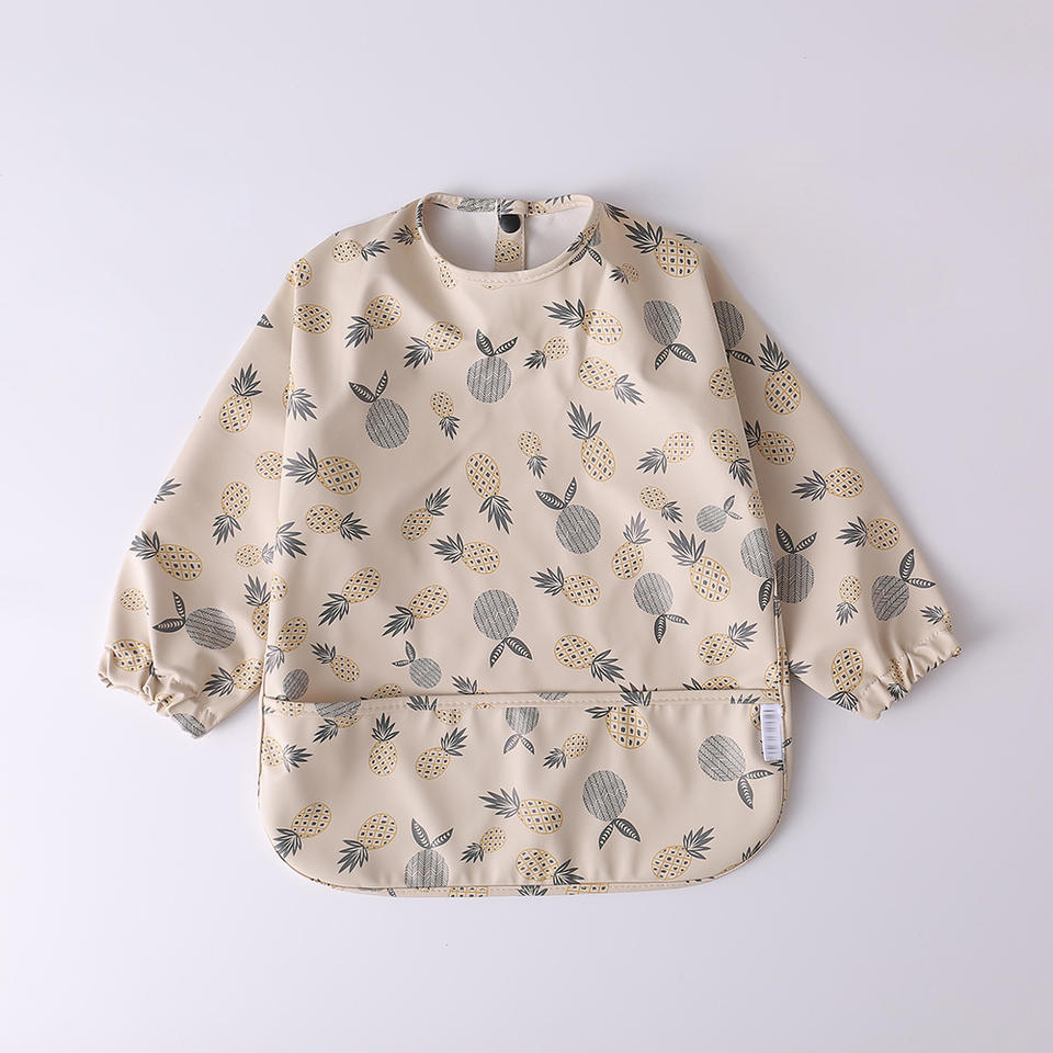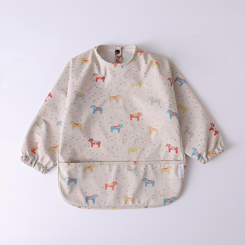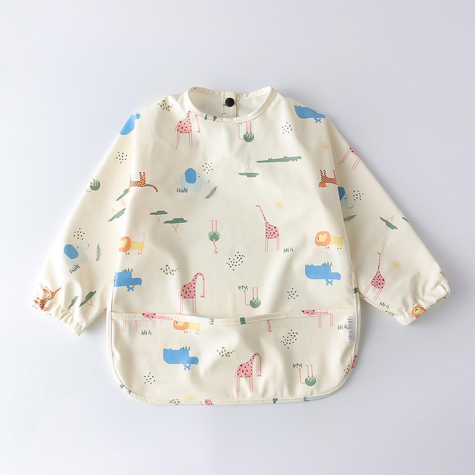 OEM poliuretano (PU) bavaglino impermeabile a maniche lunghe con tasca grembiule per bambini ottimo bavaglino da viaggio per mangiare-bavaglini per alimenti per bambini