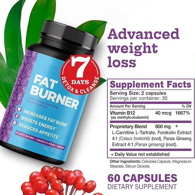 OEM capsule bruciagrassi Private Label con Panax Ginseng e L-carnitina aumenta il consumo di grasso aumenta l'energia riduce l'appetito