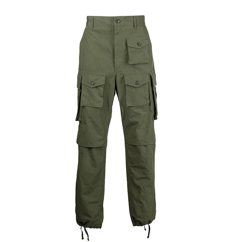 Servizio OEM Pantaloni Cargo Personalizzati da Uomo Verde Oliva con Tasche Multiple, Polsini con Coulisse, Tessuto Ripstop