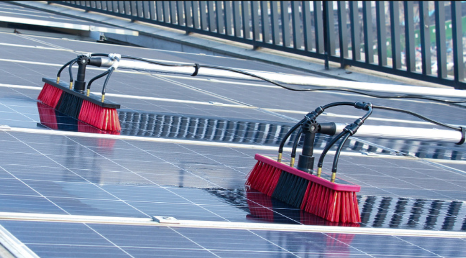 Kit di Pulizia per Pannelli Solari Fotovoltaici OEM Ampsun Amp00892, Spazzola Regolabile in Alluminio con Asta Estensibile per Pulizia a Secco/Umido di Tetti in Vetro