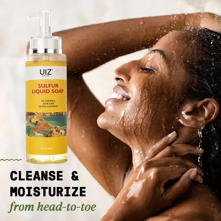 Sapone liquido allo zolfo OEM con acido citrico olio di pesca controlarne rimuovere gli acari Caregentle bagnoschiuma sapone liquido Gel doccia