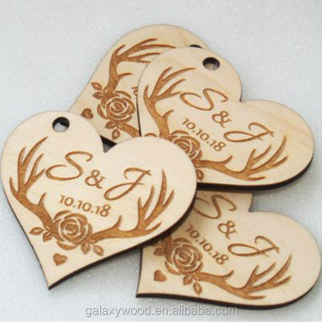 OEM fornitura taglio laser inciso cuore di legno di carta per la cerimonia nuziale